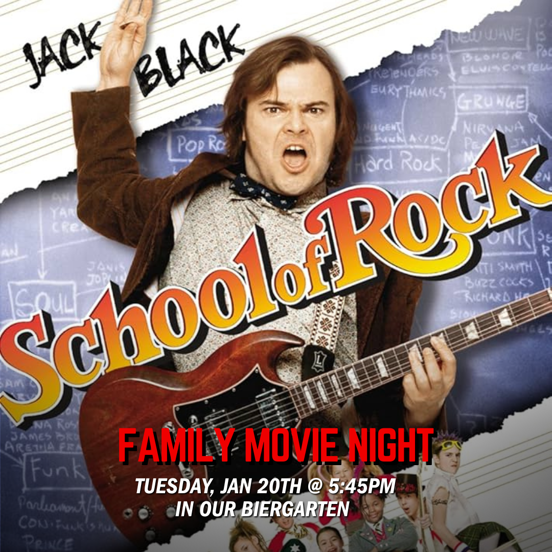 Grab your blankets, bundle up, and join us every Tuesday starting at 5:45pm in the Biergarten for our weekly movie series under the stars. This week, we're featuring School of Rock!