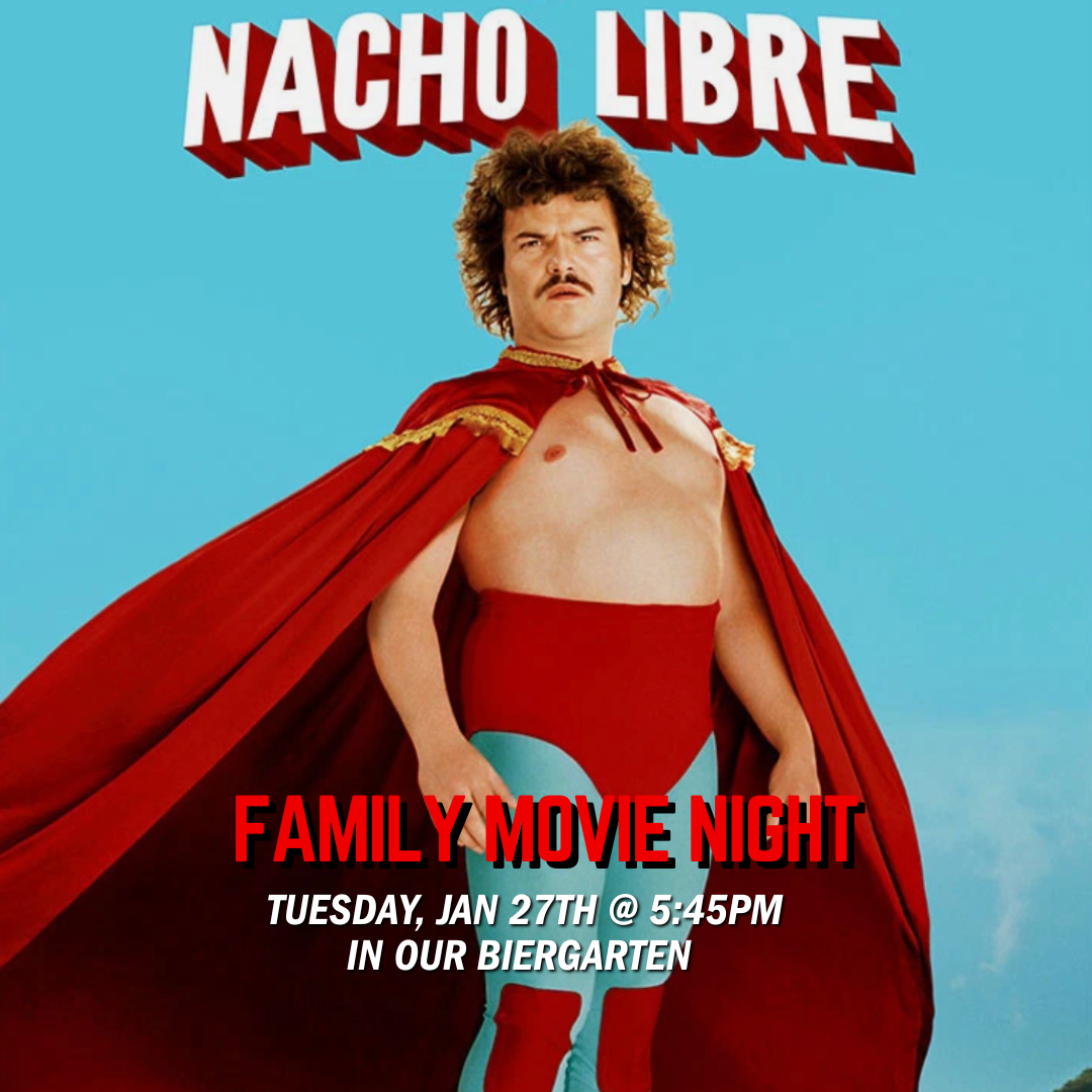 Grab your blankets, bundle up, and join us every Tuesday starting at 5:45pm in the Biergarten for our weekly movie series under the stars. This week, we're featuring Nacho Libre!